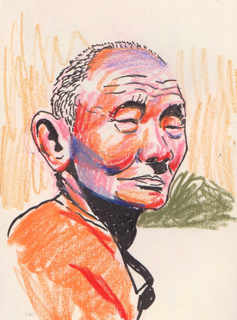 I was getting the looseness and mark-making elements I was seeking, but I wasn’t enjoying the softness of the edges. Recently though, while waiting in the doctor’s office, I pulled out a rarely used tool from my pencil pouch — my Micron pen. This time, I made my initial sketch in red pencil, added in the linework with the Micron, and laid in the Neocolors after.