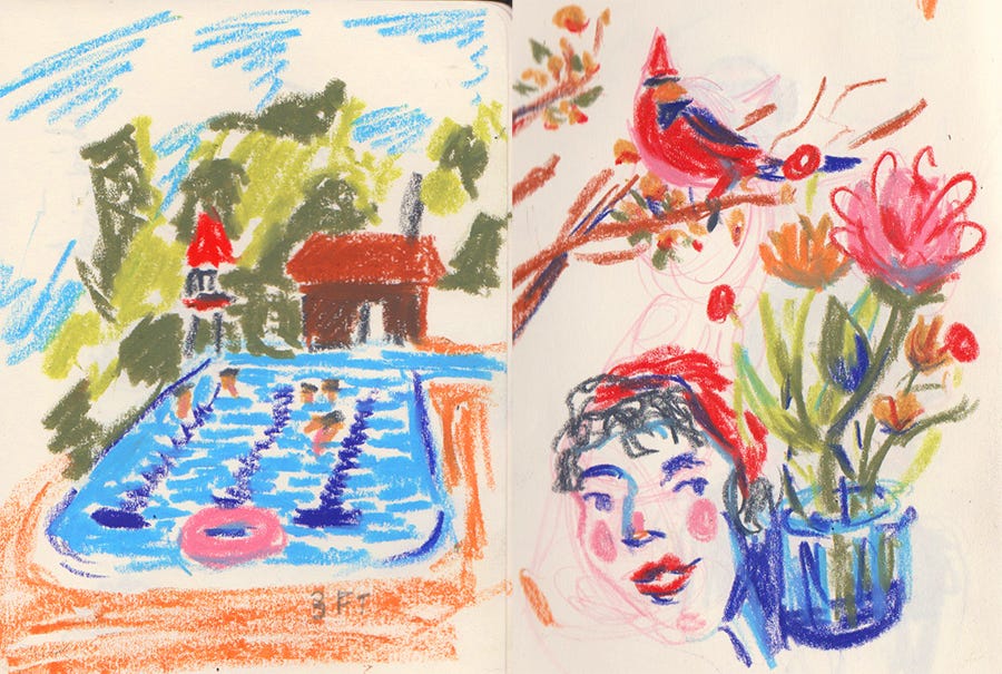 I love small collections of objects in movies for some reason, and one of my favorite scenes in James and the Giant Peach is when James removes the floorboards to reveal his small box of treasures, including a little tin of crayons. These new wax pastels felt like my own little treasured collection and I was excited to start using them. Best of all, they fit in my little pencil pouch so I could have them on hand all the time!